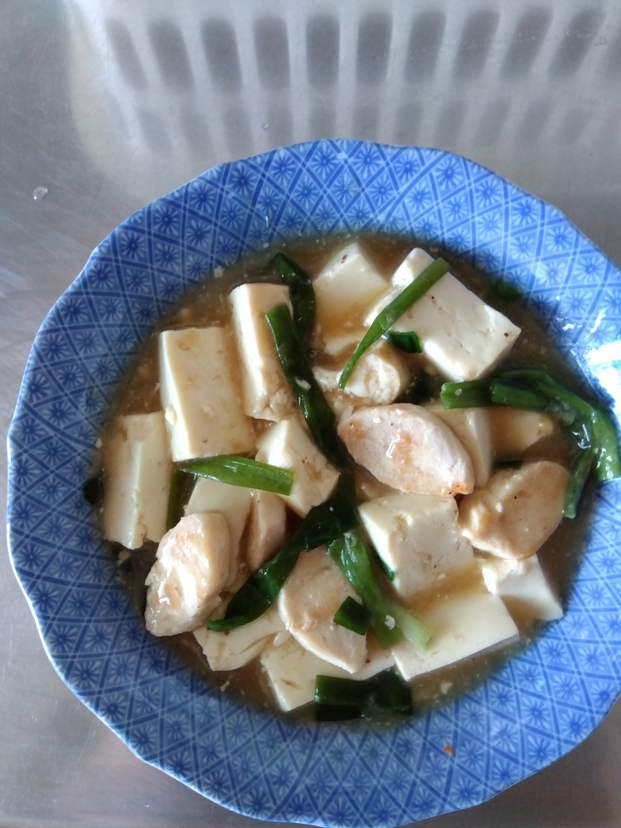 鶏肉と豆腐と小ネギの塩味あんかけだけです🎵